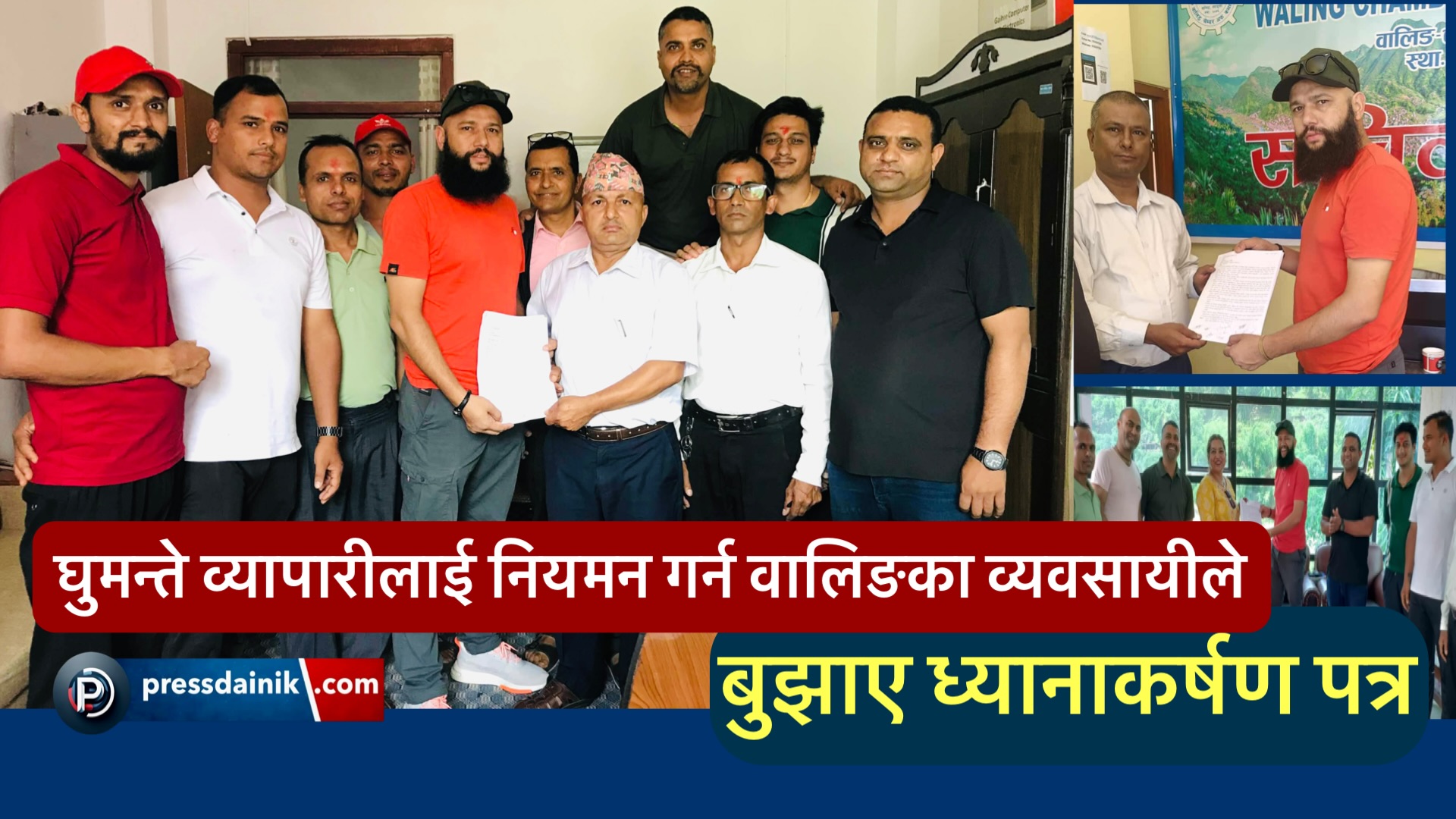 घुमन्ते व्यापारीलाई नियमन गर्न वालिङका व्यवसायीले बुझाए ध्यानाकर्षण पत्र