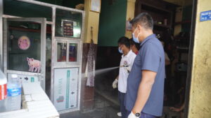 सङ्क्रमित  मासु पसलमा निसङ्क्रमण गर्दै विज्ञ केन्द्रका प्रमुख , डा.रुपेश श्रेष्ठ ।