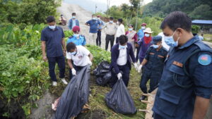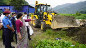 नगर उपप्रमुख कविता तिवारी (गैरे) को नेतृत्वमा वालिङ सरसफाई केन्द्रमा सङ्क्रमित मासु नष्ट गर्दै ।