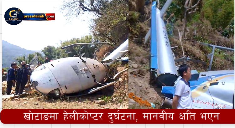 खोटाङ, चैत ४ — खोटाङ जिल्लाको केपिलासगढी गाउँपालिका–२ खार्ताम्छाको बालाबेसीमा आज एक हेलीकोप्टर दुर्घटनामा परेको छ।